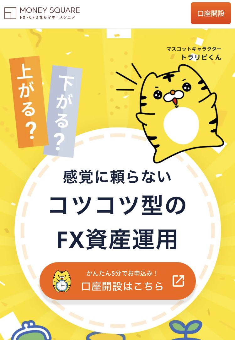 まずはマネースクエアの公式サイトにアクセスし、「口座開設」ボタンをクリックします。
