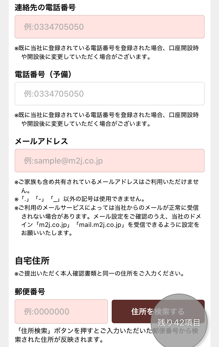 個人情報の入力画面に切り替わります。氏名、住所、生年月日、電話番号、メールアドレスなどを正確に入力していきましょう。