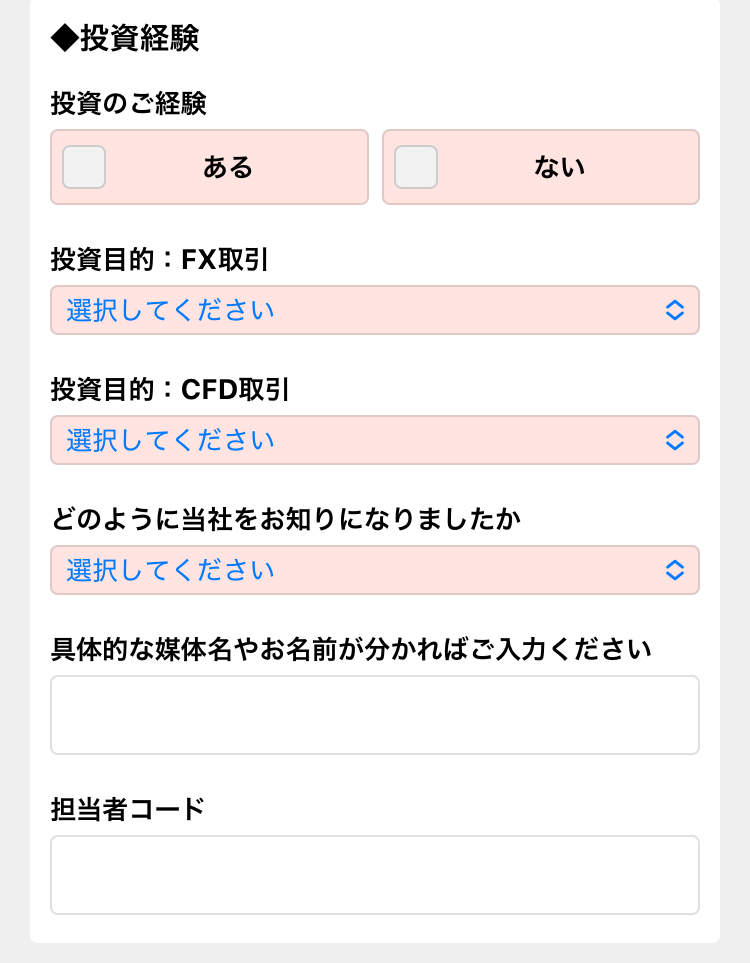 投資目的:FXを始める目的(例:資産形成、短期的な利益追求など)を選択します。
